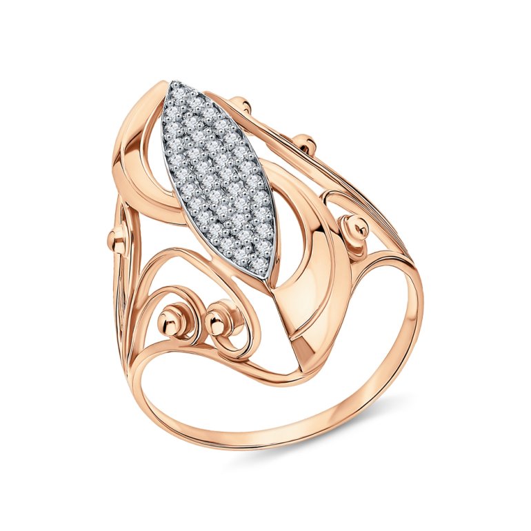 Кольцо, вставка: фианитом бесцветным; Розовое золото 585 пробы.