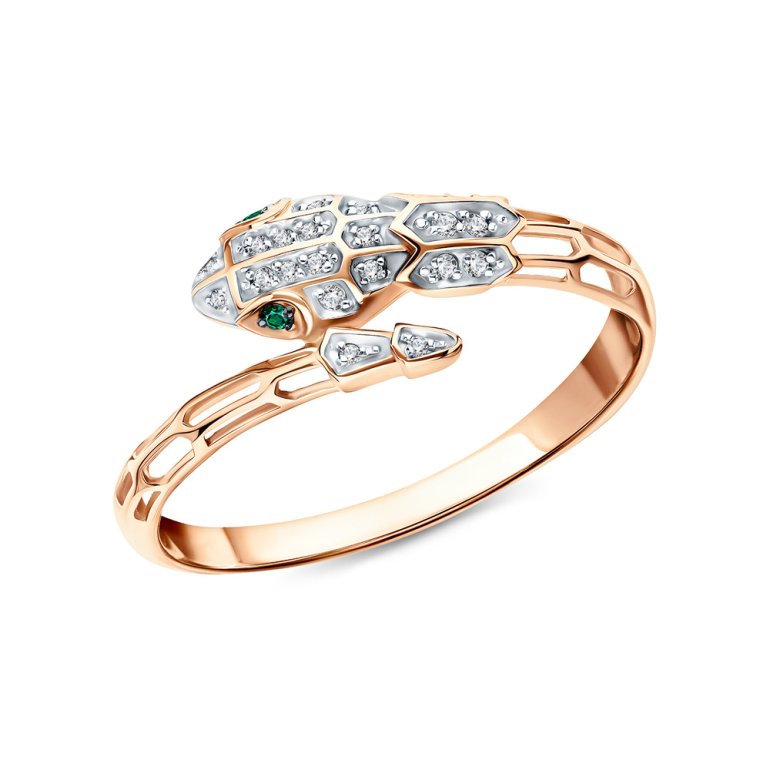 Кольцо, вставка: фианитом бесцветным;  фианит зеленый; Розовое золото 585 пробы.