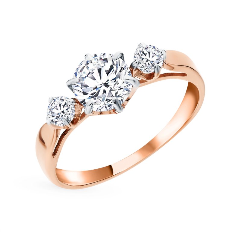Кольцо, вставка: фианит; Розовое золото 585 пробы.