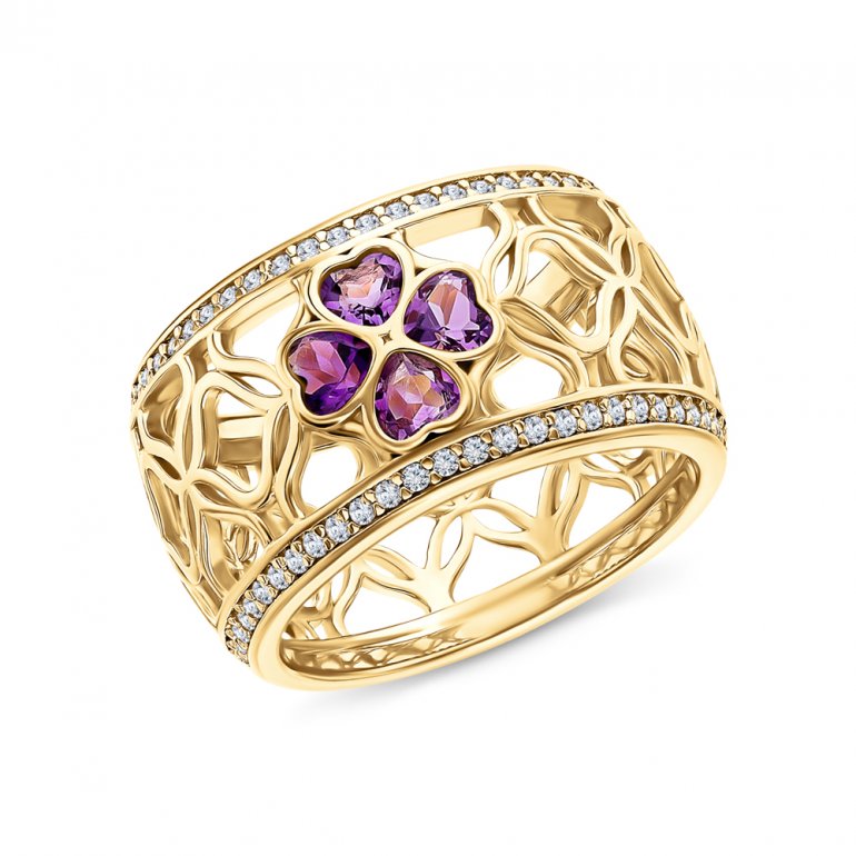 Серебряное кольцо с фианитами и аметистами природными S42712-K9Y-01 Кольца SUNLIGHT | V4.Ru: Маркетплейс