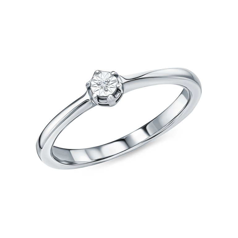 Кольцо с 1 бриллиантом природным, 0.003 карат, огранка круг 17 граней, цвет 2, чистота 4, тип огранки Б; Серебро 925 пробы.