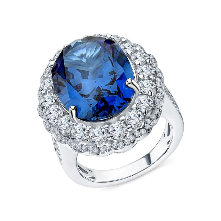Кольцо, вставка: фианит синий;  фианитом бесцветным; Серебро 925 пробы.