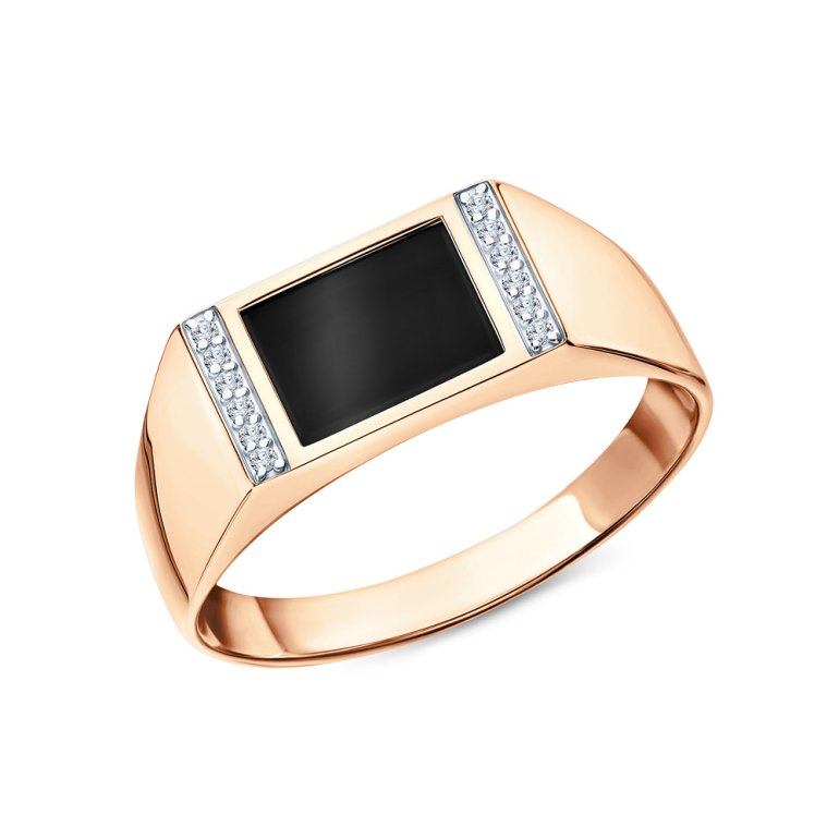 Кольцо, вставка: фианитом бесцветным;  черным фианитом; Розовое золото 585 пробы.