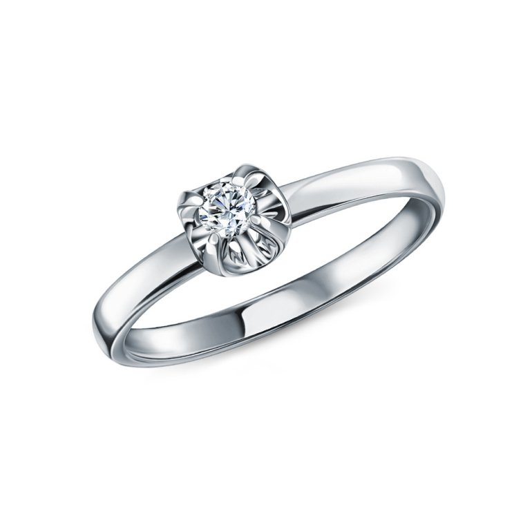 Кольцо с 1 бриллиантом, 0.057 карат, огранка круг 57 граней, цвет 3, чистота 6, тип огранки А; Белое золото 585 пробы.