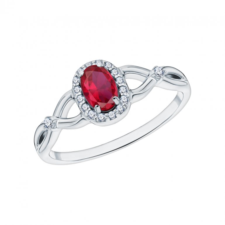 Кольцо с 1 рубином С, 0.561 карат, цвет 2, чистота 2, тип огранки Б; фианит; Серебро 925 пробы.