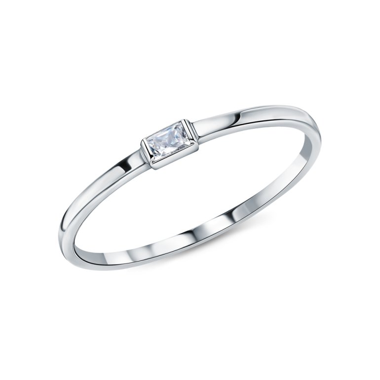 Кольцо с 1 бриллиантом, 0.08 карат, огранка багет 25 граней, цвет 3, чистота 3, тип огранки А; Белое золото 585 пробы.