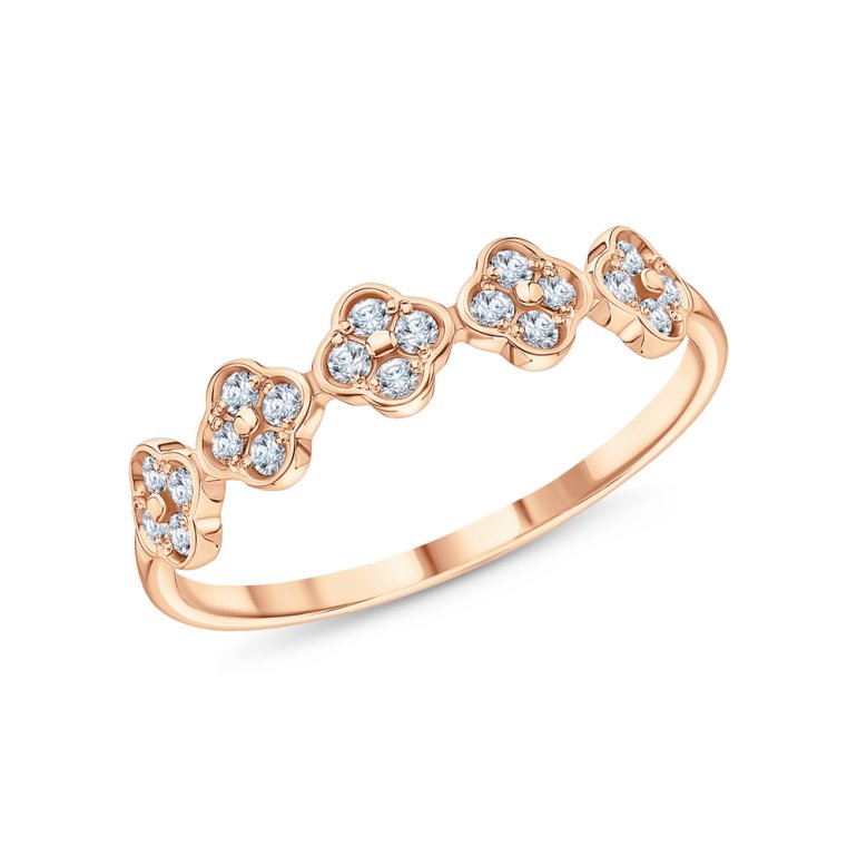 Кольцо, вставка: фианитом бесцветным; Розовое золото 375 пробы.