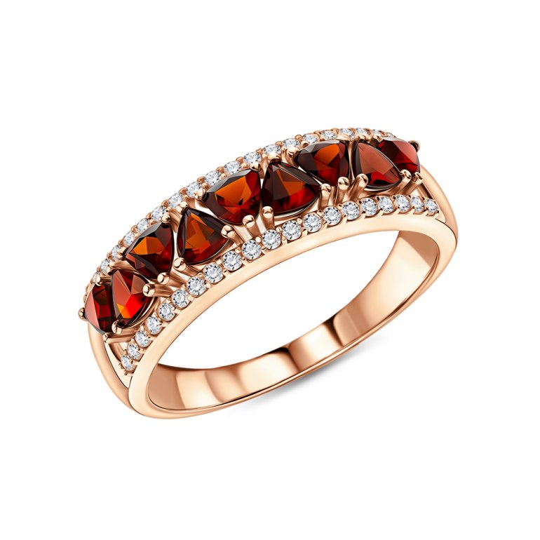 Золотое кольцо с фианитами и гранатами природными 01К3113967-1* Кольца SUNLIGHT | V4.Ru: Маркетплейс