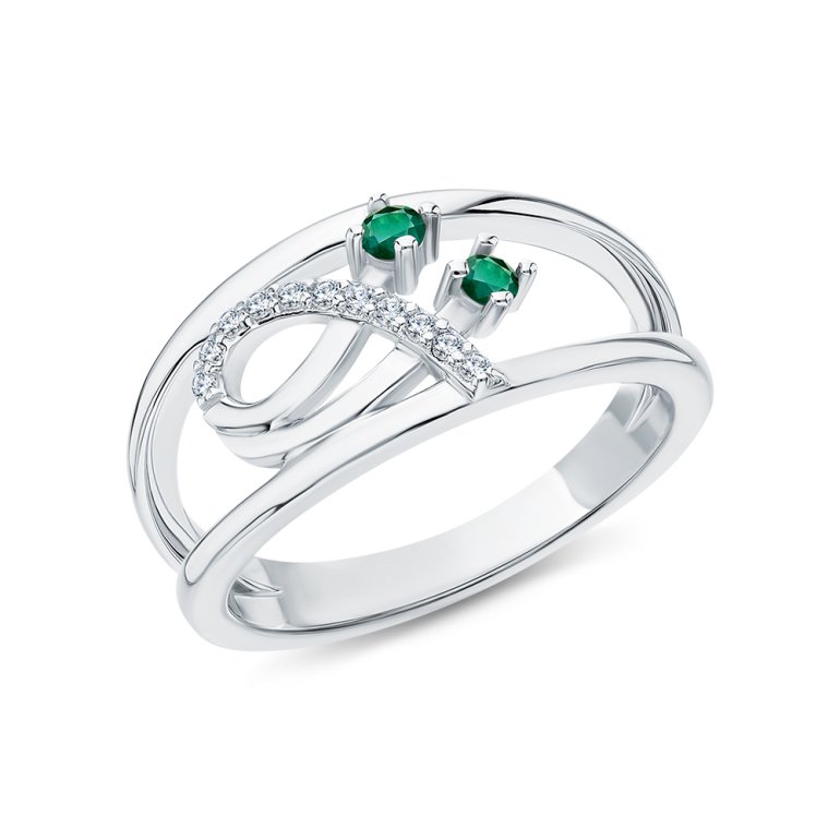 Кольцо с 2 агатами зелеными природными;  фианитом бесцветным; Серебро 925 пробы.
