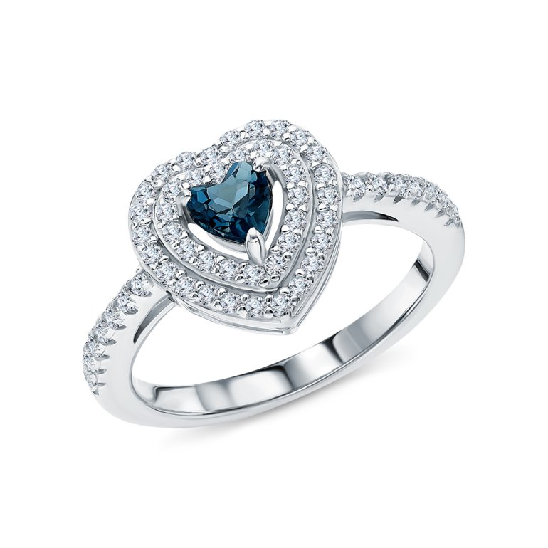 Кольцо, вставка: топаз лондон природный;  фианитом бесцветным; Серебро 925 пробы.