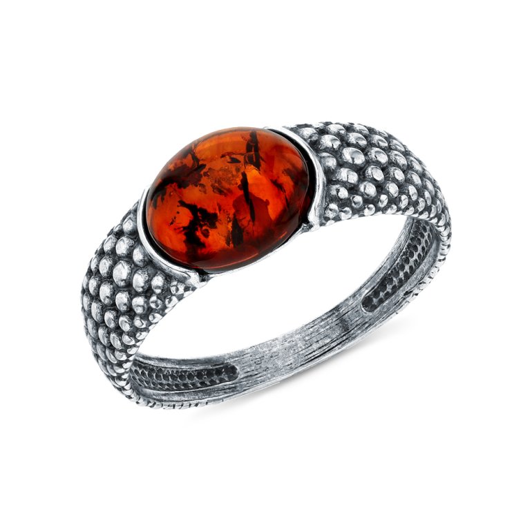 Серебряное кольцо с янтарем природным