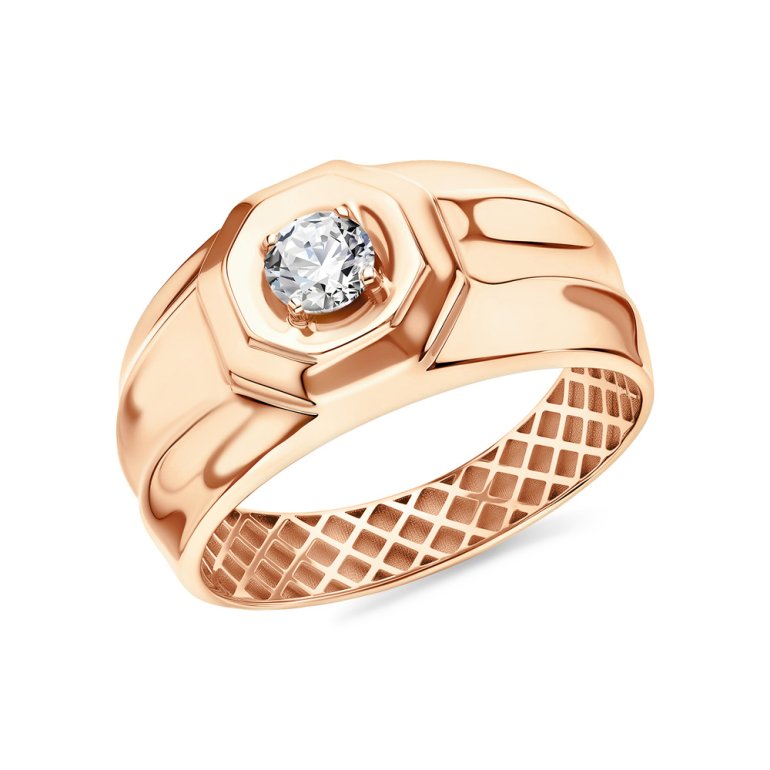 Кольцо, вставка: фианитом бесцветным; Розовое золото 585 пробы.
