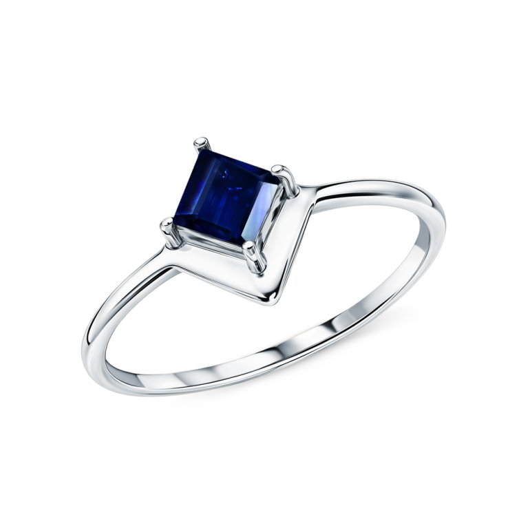 Кольцо с 1 сапфиром природным, 0.435 карат, цвет 3, чистота 4, тип огранки Б; Белое золото 585 пробы.