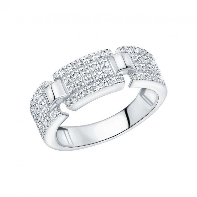 Кольцо с 60 бриллиантами природными, 0.171 карат, огранка круг 17 граней, цвет 2, чистота 2, тип огранки А; Белое золото 585 пробы.