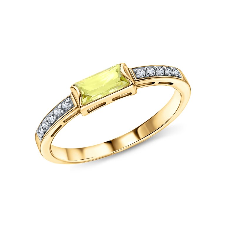 Кольцо с 1 кварцем лимонным природным, 0.37 карат, тип огранки Б; фианитом бесцветным; Желтое золото 585 пробы.