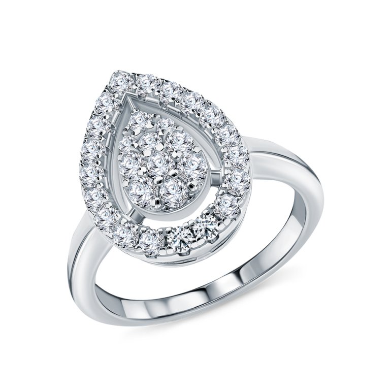Кольцо, вставка: фианитом бесцветным; Серебро 925 пробы.