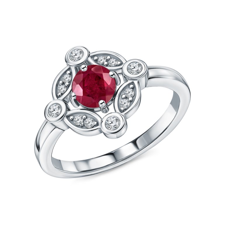 Серебряное кольцо с фианитами и рубином природным S43051-K9W-02 Кольца SUNLIGHT | V4.Ru: Маркетплейс