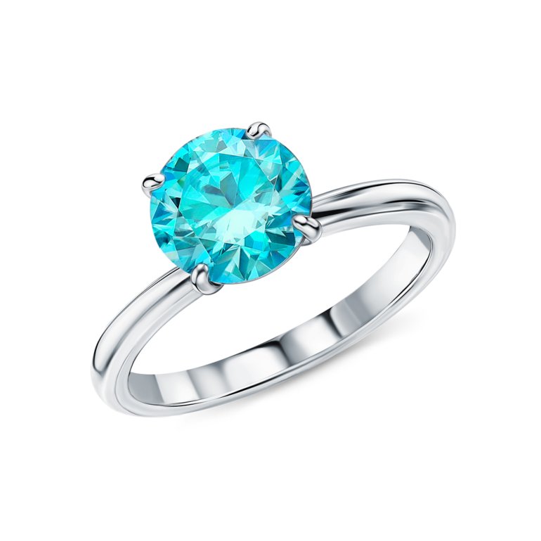Кольцо с 1 муассанитом параиба, 1.725 карат; Серебро 925 пробы.