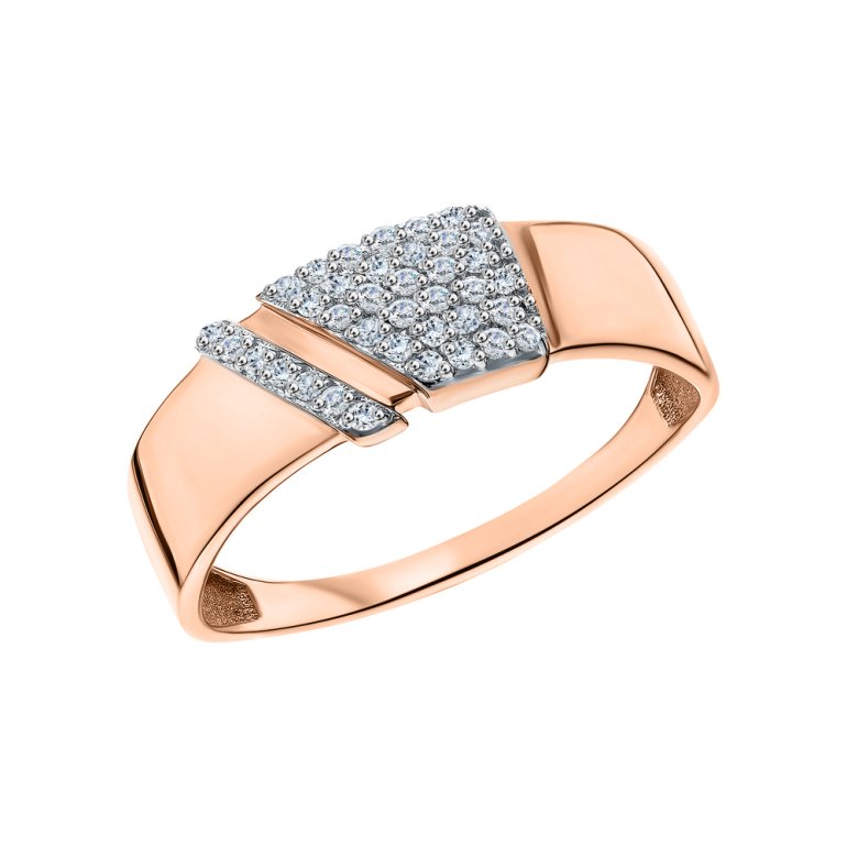 Кольцо, вставка: фианитом бесцветным; Розовое золото 585 пробы.