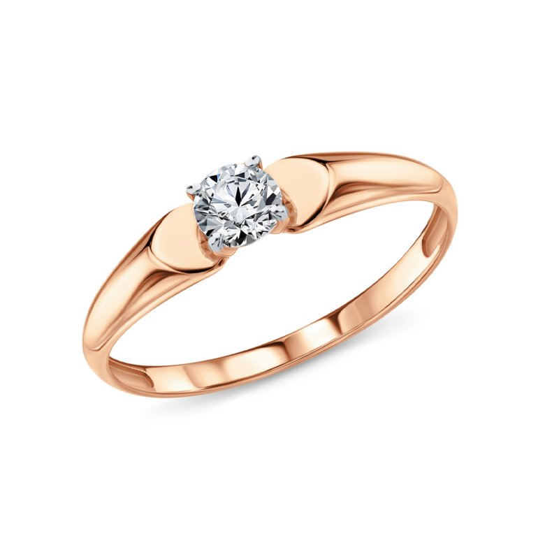 Кольцо, вставка: фианитом бесцветным; Розовое золото 375 пробы.