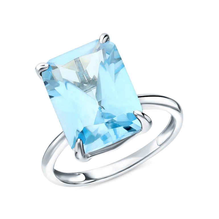 Кольцо с 1 топазом скай природным, 8.525 карат, тип огранки Б; Белое золото 585 пробы.