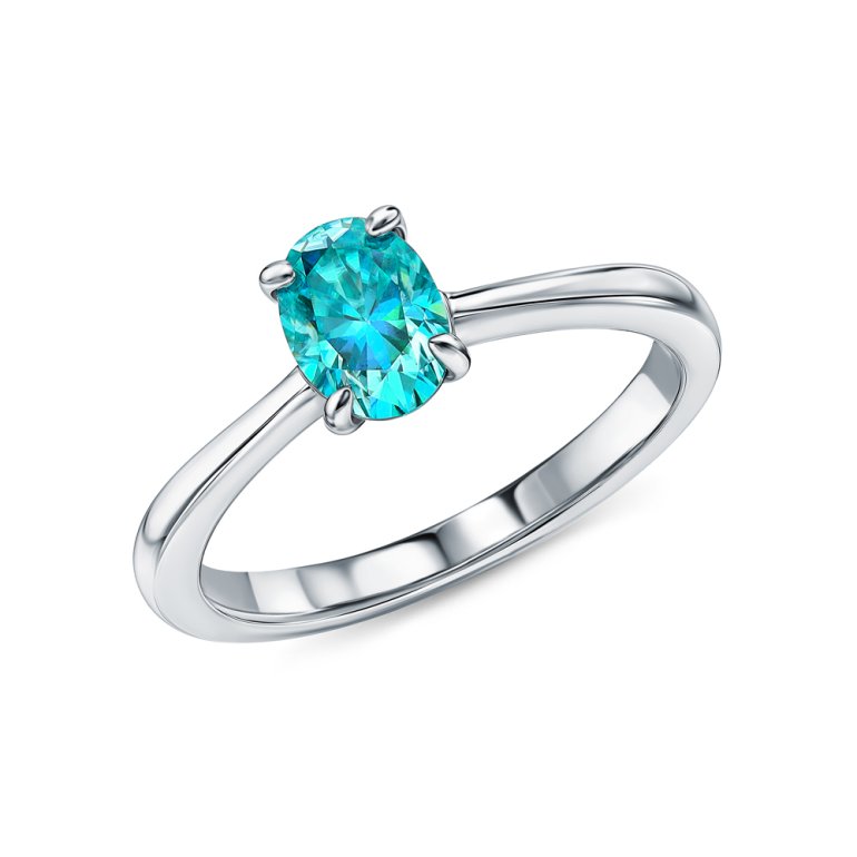 Кольцо с 1 муассанитом параиба, 0.785 карат; Серебро 925 пробы.