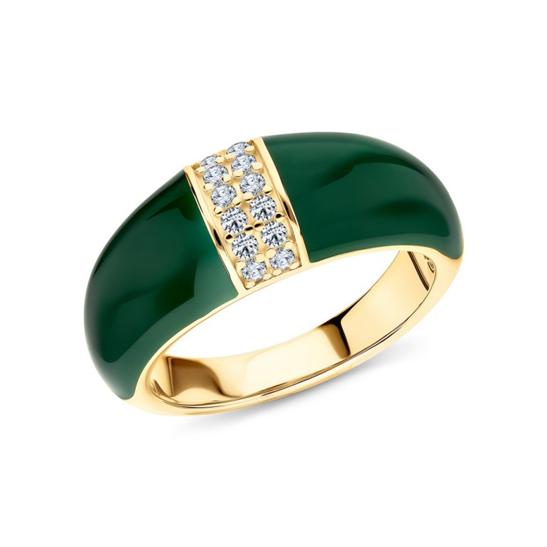 Кольцо, вставка: эмаль зеленая;  фианитом бесцветным; Серебро 925 пробы.