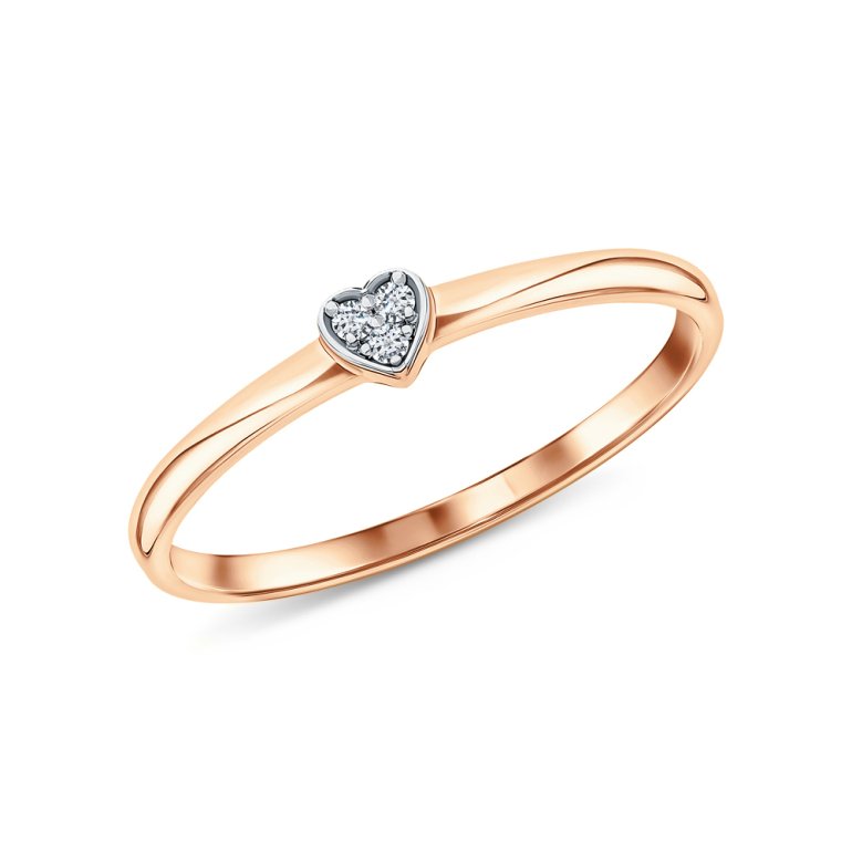 Кольцо с 3 бриллиантами, 0.024 карат, огранка круг 17 граней, цвет 2, чистота 2, тип огранки А; Розовое золото 585 пробы.