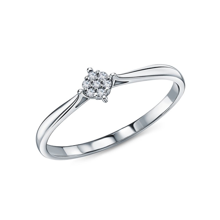 Кольцо с 7 бриллиантами, 0.045 карат, огранка круг 57 граней, цвет 3, чистота 6, тип огранки А; Платина 950 пробы.