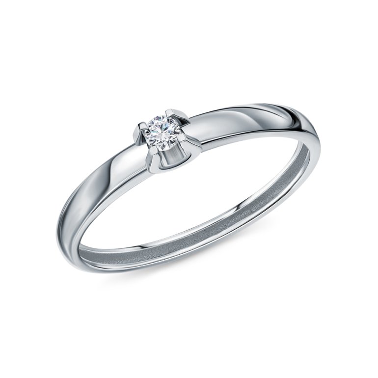 Кольцо с 1 бриллиантом, 0.058 карат, огранка круг 57 граней, цвет 3, чистота 6, тип огранки А; Платина 950 пробы.