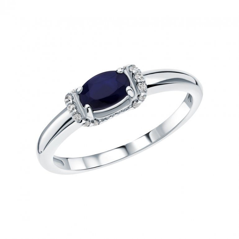Кольцо с 1 сапфиром, 0.565 карат, цвет 2, чистота 2, тип огранки Б; фианитом бесцветным; Серебро 925 пробы.