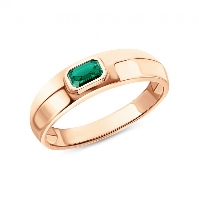 Кольцо с 1 гидротермальным изумрудом, 0.502 карат, тип огранки Б; Розовое золото 585 пробы.