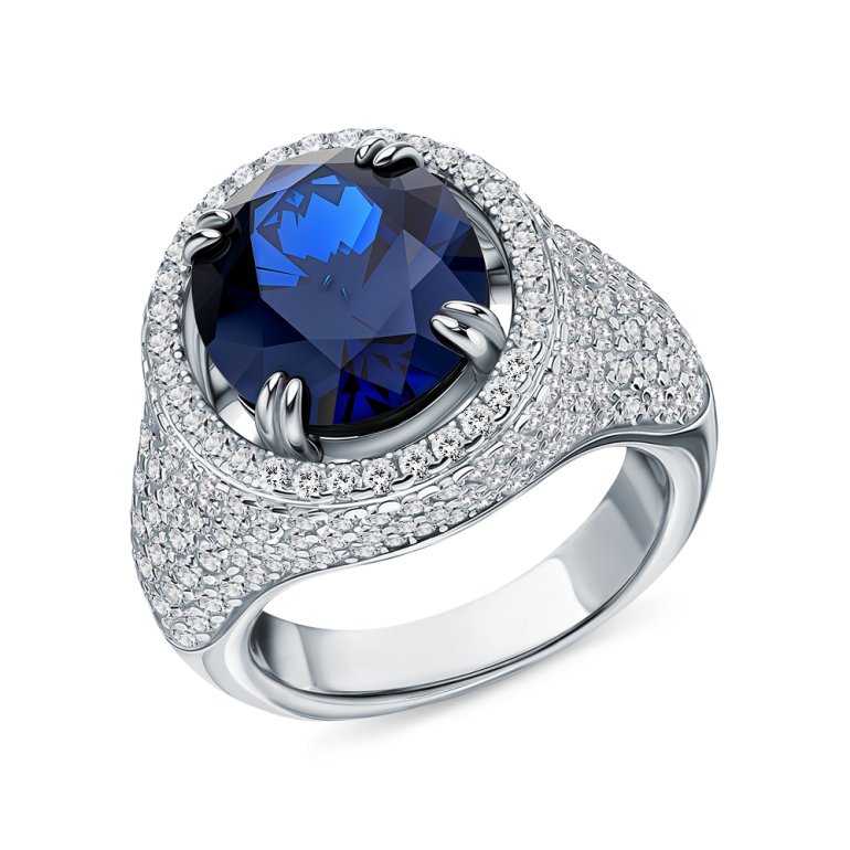 Кольцо, вставка: фианитом бесцветным;  шпинель синяя синтетическая; Серебро 925 пробы.