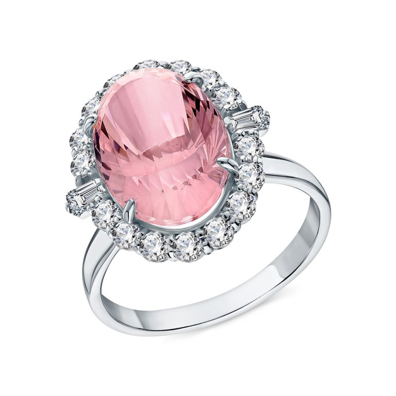Кольцо, вставка: ситалл морганит;  фианитом бесцветным; Серебро 925 пробы.