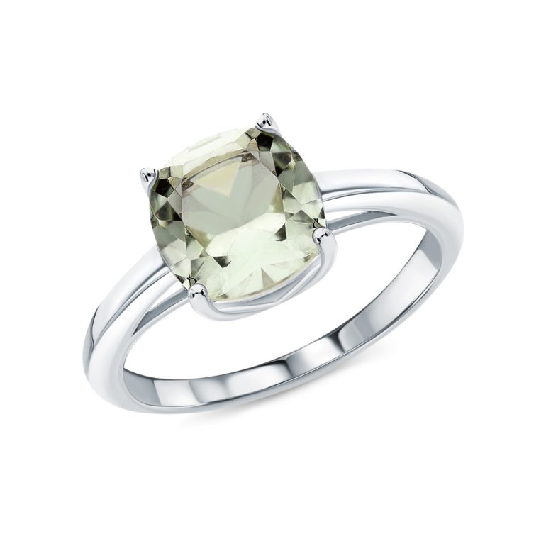 Кольцо с 1 аметистом зеленым, 2.05 карат; Серебро 925 пробы.
