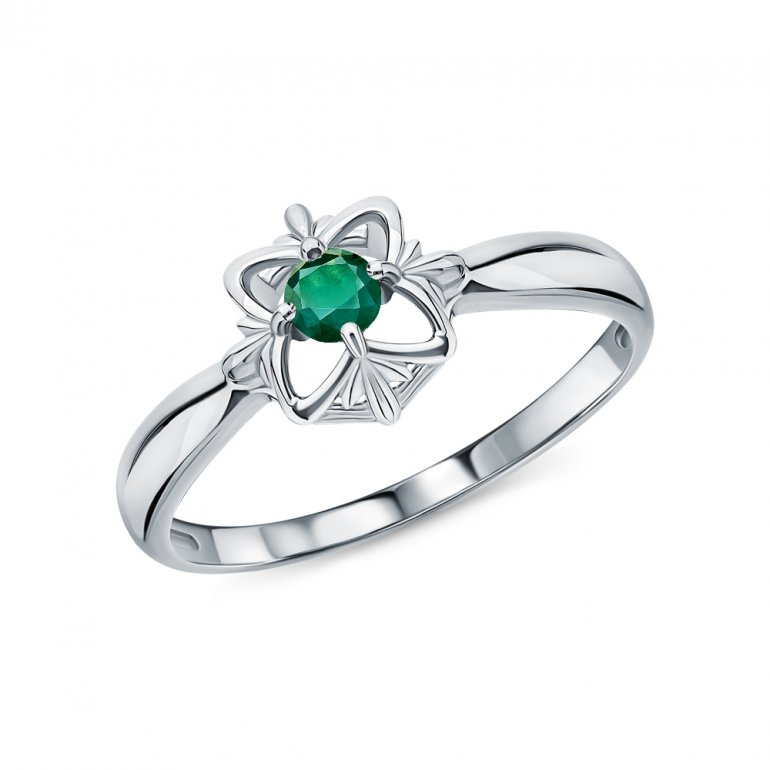 Кольцо с 1 изумрудом природным, 0.098 карат, цвет 3, чистота 3, тип огранки В; Серебро 925 пробы.