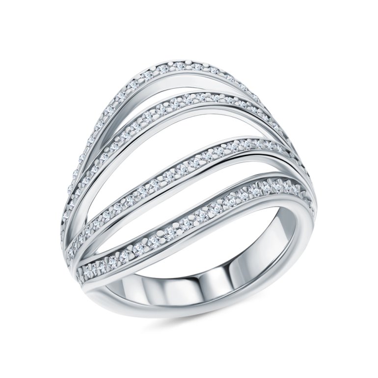 Серебряное кольцо с фианитами S56114-K9W-01 Кольца SUNLIGHT | V4.Ru: Маркетплейс