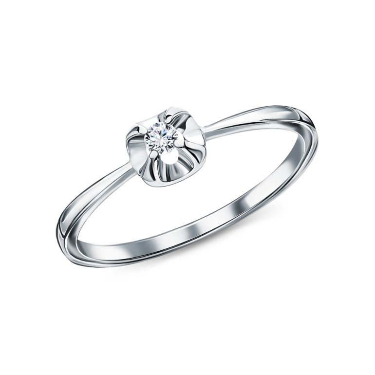 Кольцо с 1 бриллиантом, 0.029 карат, огранка круг 57 граней, цвет 3, чистота 6, тип огранки А; Белое золото 585 пробы.