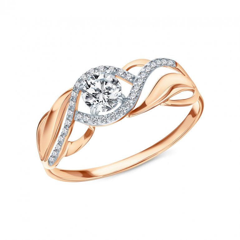 Кольцо, вставка: фианитом бесцветным; Розовое золото 585 пробы.