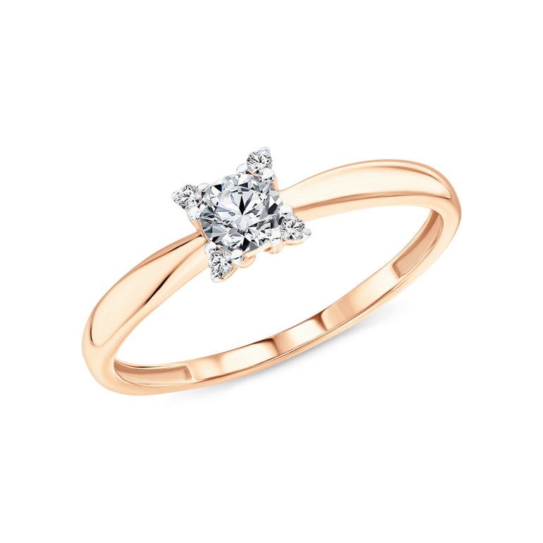 Кольцо, вставка: фианитом бесцветным; Розовое золото 585 пробы.