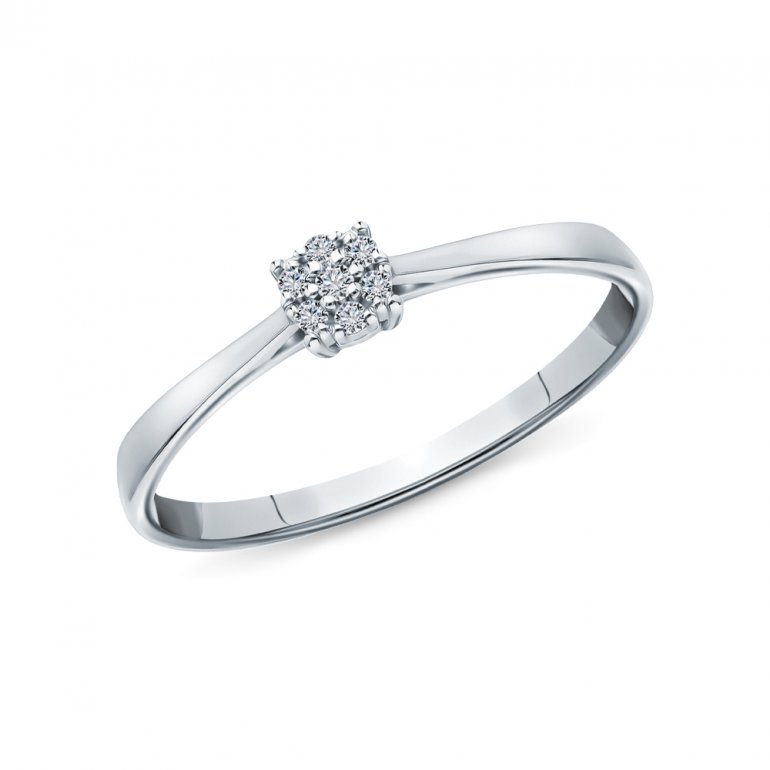 Кольцо с 1 бриллиантом природным, 0.008 карат, огранка круг 17 граней, цвет 2, чистота 2, тип огранки А; 6 бриллиантами природными, 0.024 карат, огранка круг 17 граней, цвет 2, чистота 2, тип огранки А; Белое золото 585 пробы.