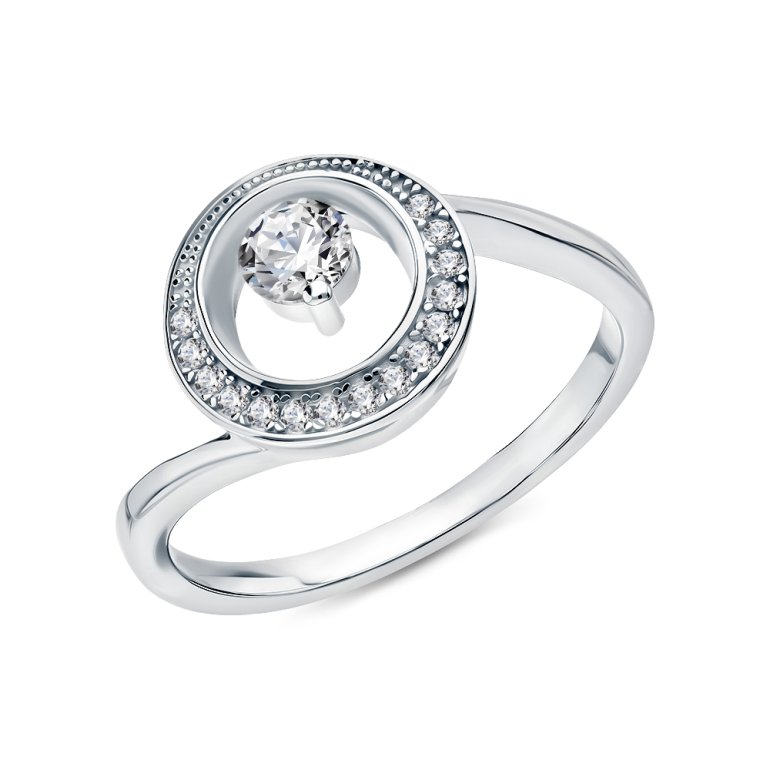 Кольцо, вставка: фианитом бесцветным; Серебро 925 пробы.