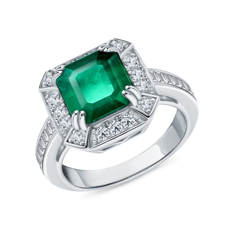 Кольцо, вставка: фианитом бесцветным;  кварц дублет зеленый; Серебро 925 пробы.