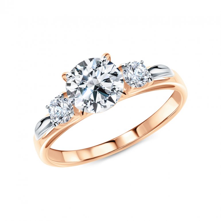 Кольцо, вставка: фианитом бесцветным; Розовое золото 585 пробы.