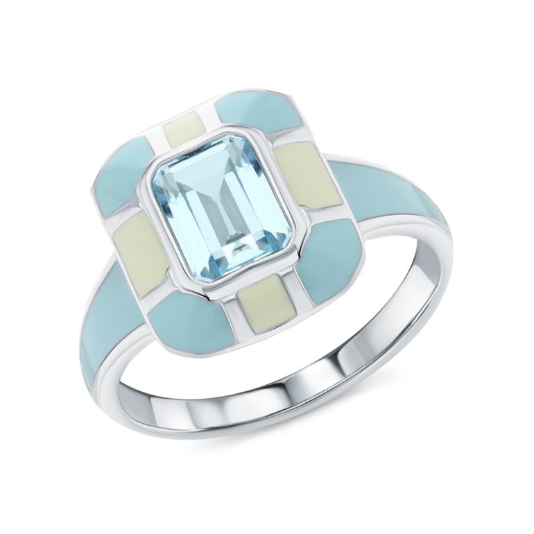 Серебряное кольцо с эмалью и топазами природными S42986-K9W-01 Кольца SUNLIGHT | V4.Ru: Маркетплейс