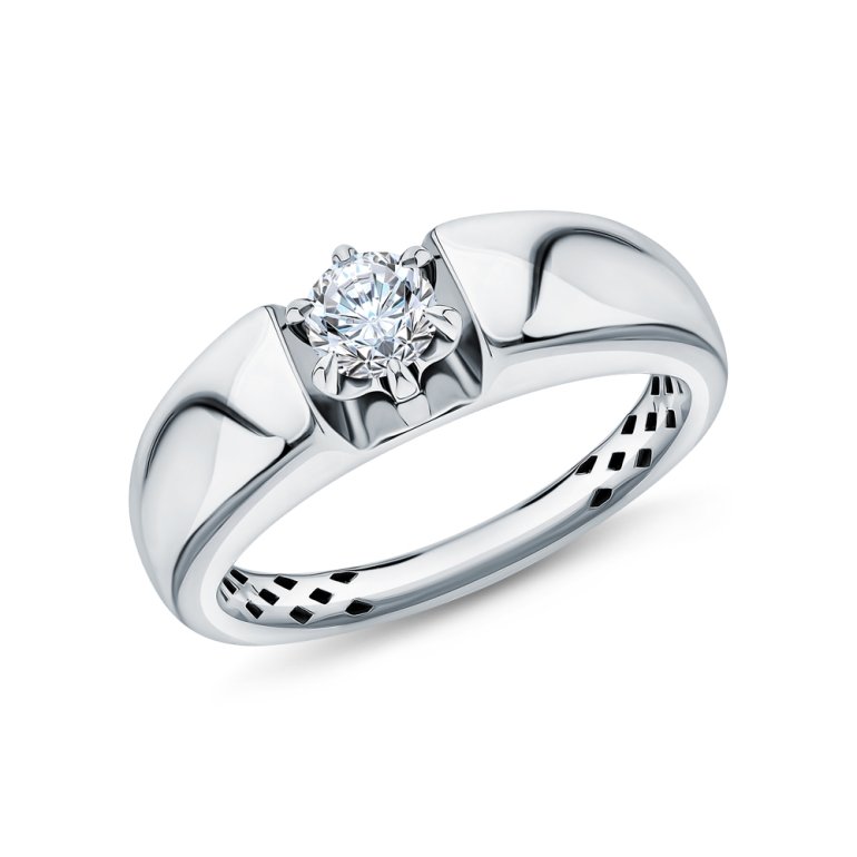 Кольцо с 1 бриллиантом, 0.257 карат, огранка круг 57 граней, цвет 4, чистота 6, тип огранки А; Белое золото 585 пробы.