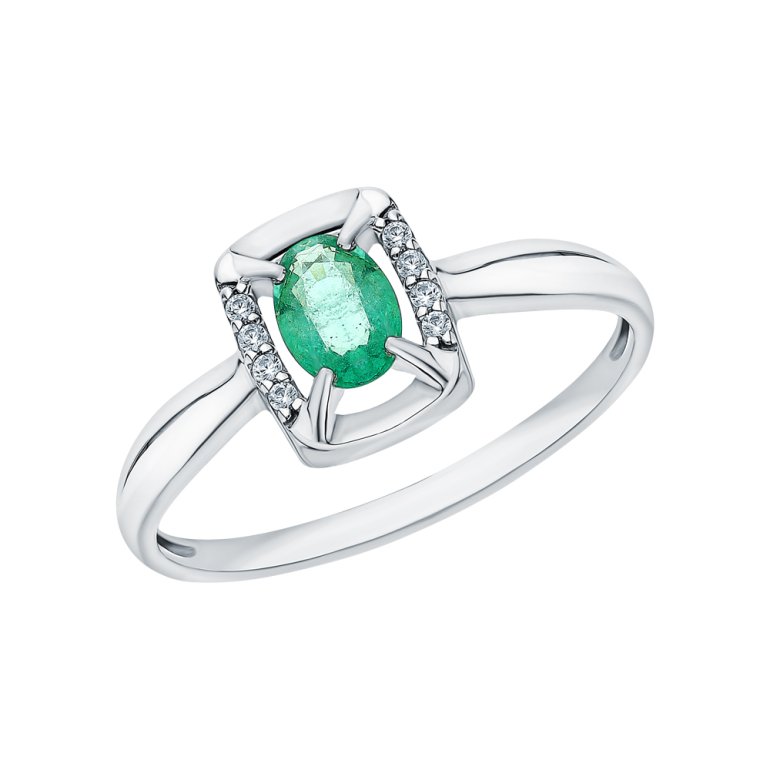 Кольцо с 1 изумрудом природным, 0.406 карат, цвет 3, чистота 3, тип огранки Б; фианитом бесцветным; Серебро 925 пробы.