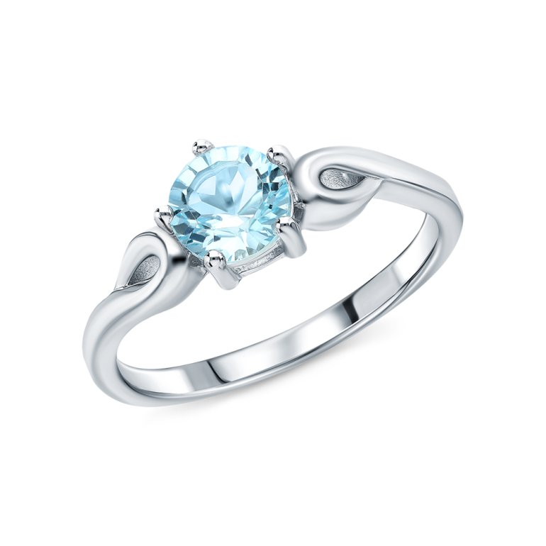 Кольцо с 1 топазом скай природным, 0.8 карат, тип огранки Б; Серебро 925 пробы.