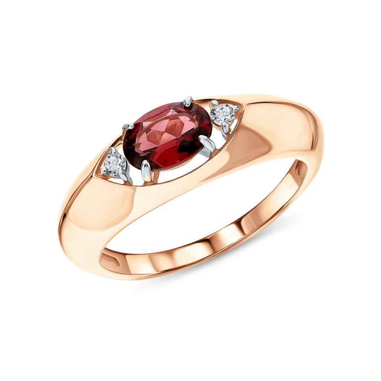 Кольцо с 1 родолитом, 0.92 карат, тип огранки Б; 2 муассанитами, 0.04 карат; Розовое золото 585 пробы.