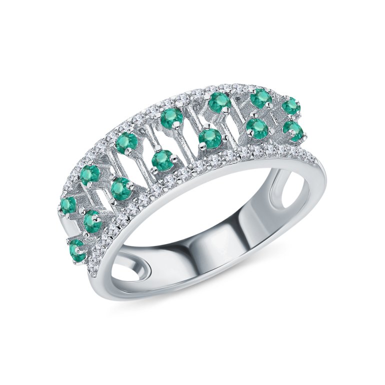 Кольцо с 14 агатами зелеными природными;  фианитом бесцветным; Серебро 925 пробы.